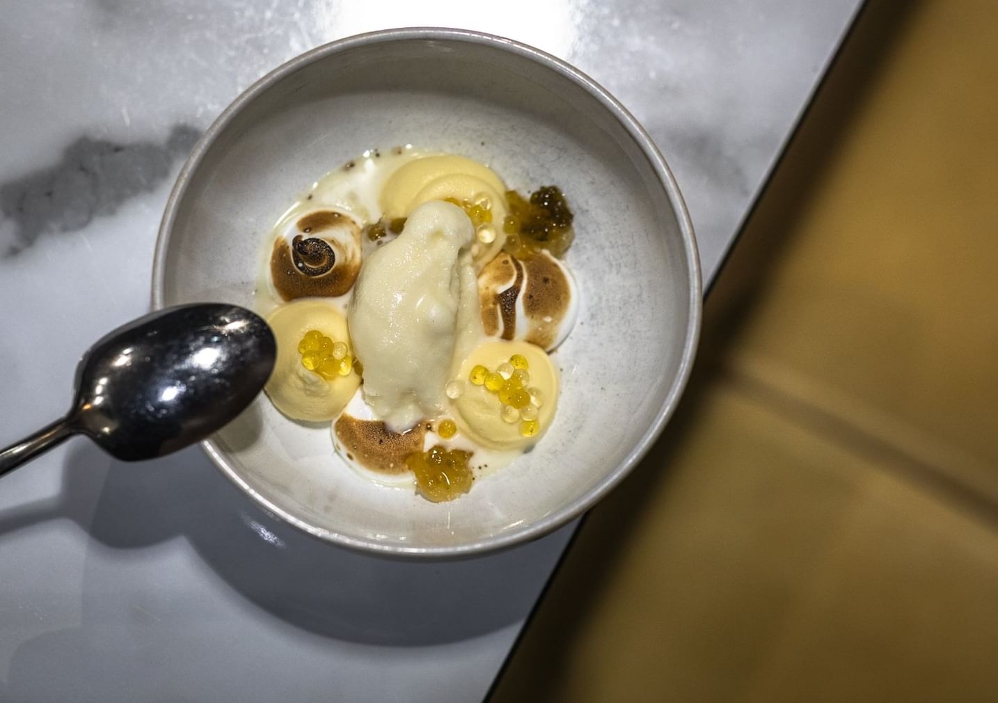 Dans un cadre chargé d'art et d'histoire qui célèbre le savoir-faire du célèbre artiste et mosaïste Italo-Breton Isidore Odorico, découvrez une carte qui met en valeur les produits locaux, de saison à travers des propositions toujours alléchantes et à la réalisation soignée. Combinant l’art de recevoir et la gourmandise, la proximité et la découverte, vous serez sous le charme de ce lieu emblématique !
